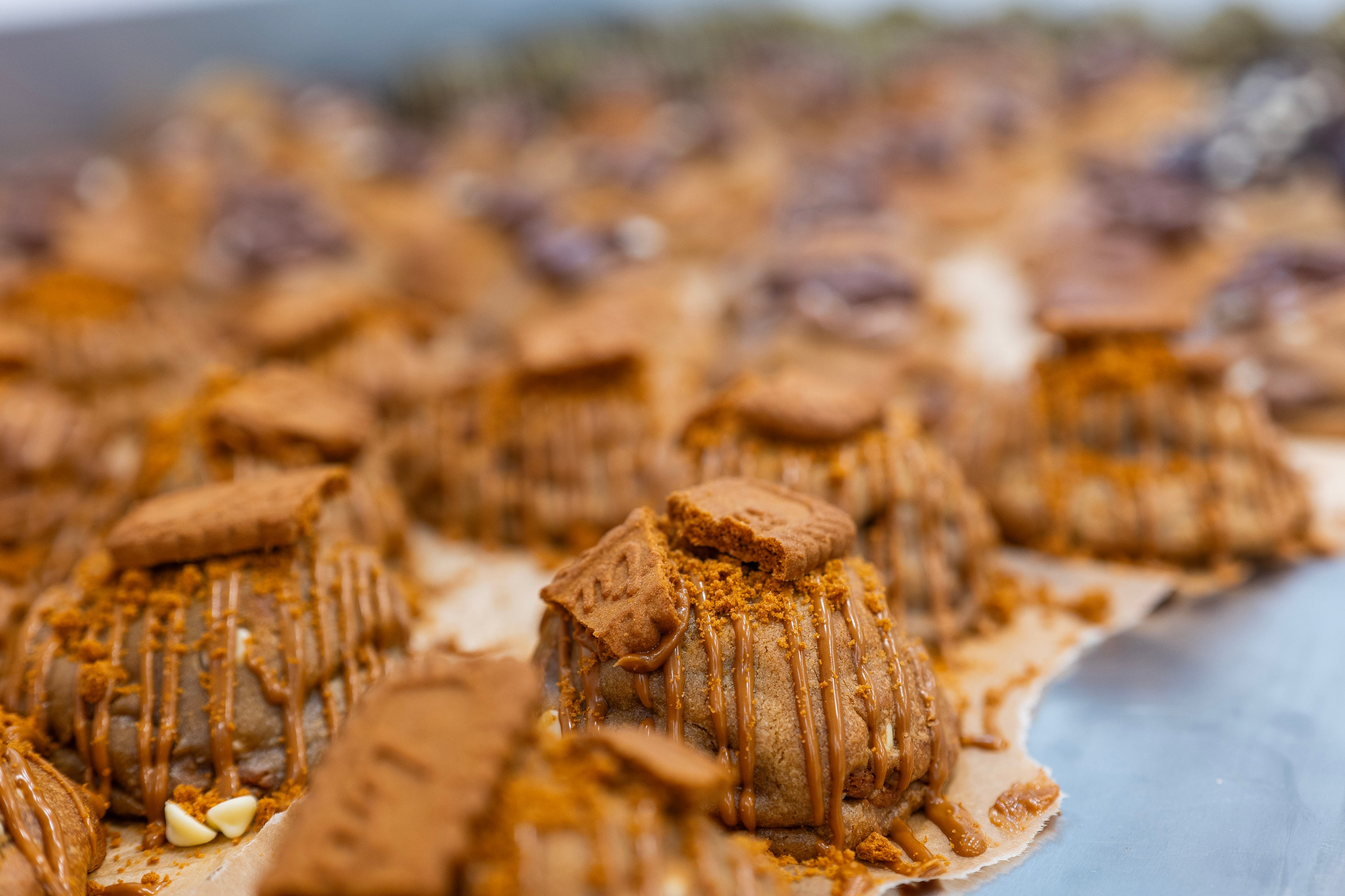 A warm, golden cookie base infused with cinnamon and brown sugar, baked soft and thick just the way we do it.